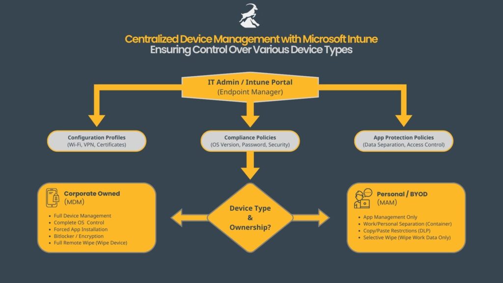 Microsoft Intune is designed to make the transition to secure device management smooth. Rather than forcing a single strict and rigid path, it provides a framework which enables different platforms to enter management in a manner that feels natural to users while still meeting security and compliance goals and expectations set by the organization itself and different global standards and frameworks.